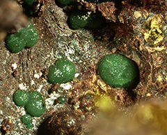 ![]() Mansfelder Nacktärsche Das sind Pflastersteine, hergestellt aus Schlacke Foto Frank Wenzel ![]() Kupfer als Kugel in einem Schlackenhohlraum auskristallisiert; Bildbreite 3mm, Mansfeld Foto Walter Hajek ![]() Malachit kugelig; Bildbreite 0,9 mm, Mansfeld Foto Walter Hajek ![]() Erythrin (Kobaltblüte) Seidelschacht Foto Frank Wenzel |